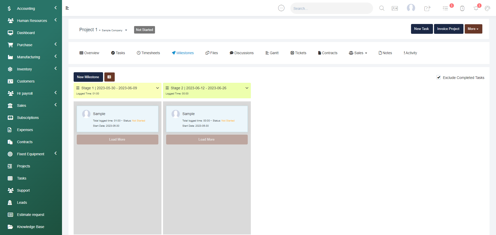 Navigate to the Projects tab, select your desired project, and select the Milestone tab.