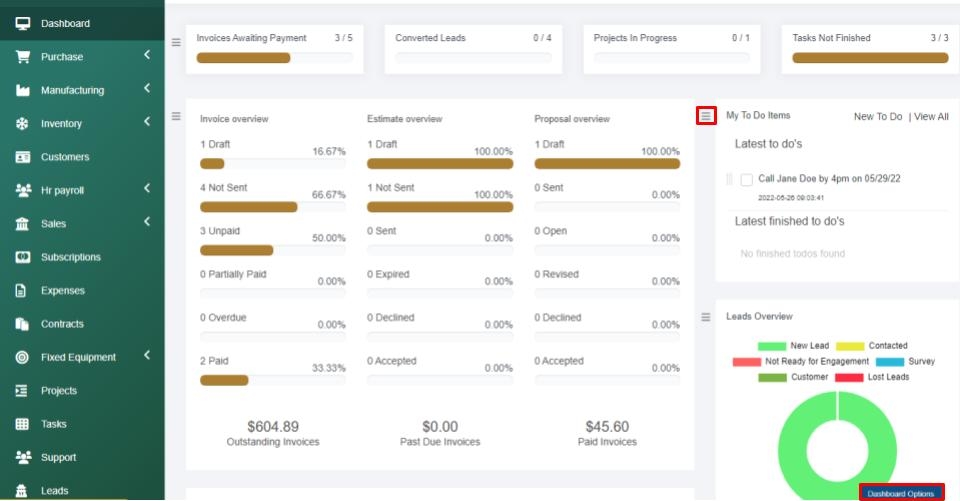 You can customize this as you see fit by navigating to the bottom right of your dashboard screen and selecting the Dashboard Options button.