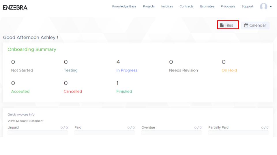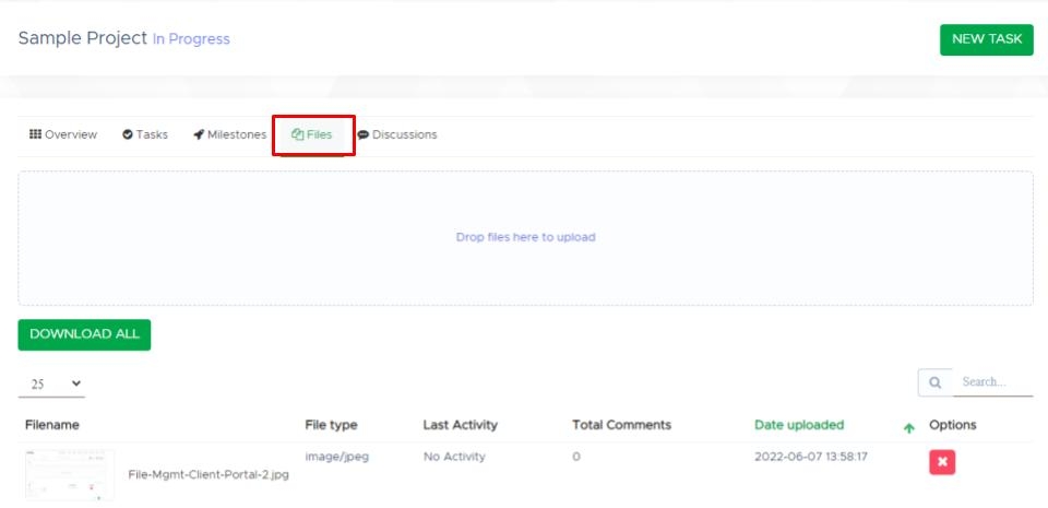 2 - Or you can navigate to the Projects tab, select into the applicable project, and select into the internal project Files tab to drag and drop files into the upload section or select the upload section to search through your files to upload files with ease.
