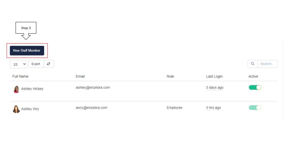 Note: The role you select for the staff member will set the permissions of what this user can access within the platform. Then you will have to set a password for the new staff member and communicate this to the new member to access the platform.