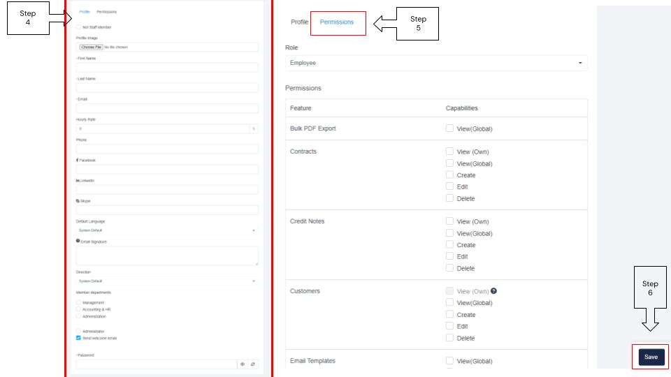Step 5 - Then you will set the New Staff Members Permissions by selecting into the Permissions tab.