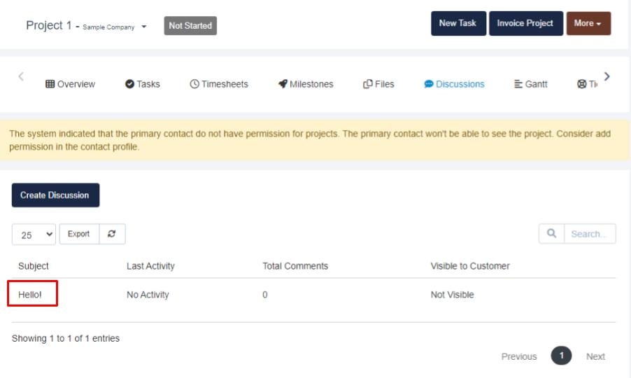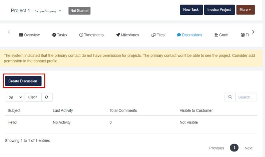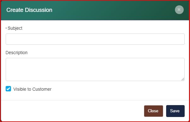 To create a discussion, select the Create Discussion button, enter in the subject, and type your message in the description box, then Save your discussion.