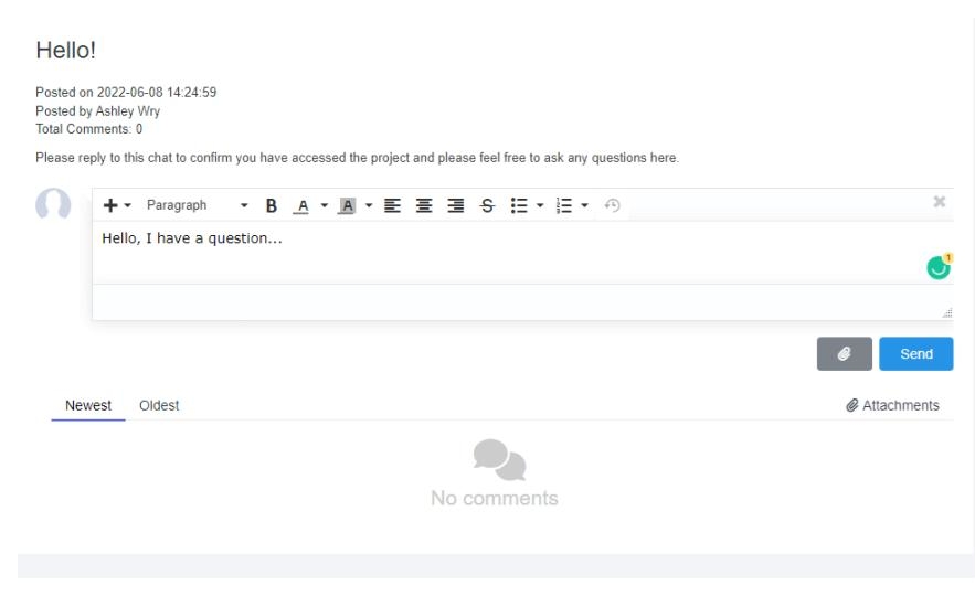 The discussions tab within your projects is intended for you and your team to be able to ask questions and have discussions.